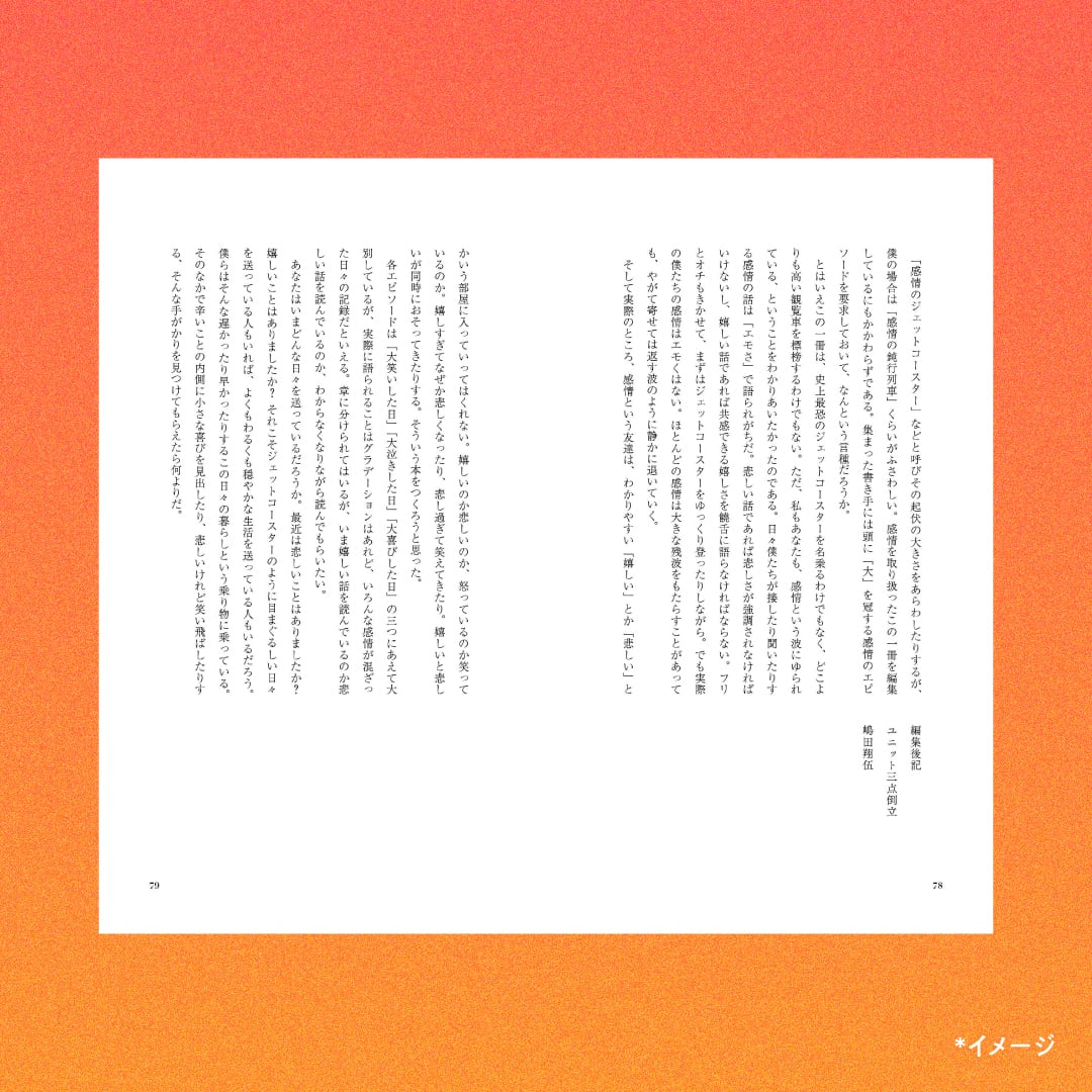 人生にはいろんな日々がある。大喜びした日、大泣きした日、大笑いした日。けれどふりかえってみれば、なんであんなに喜んだのか、泣いたのかわからないことだってある。嬉しすぎて泣いたのか、悲しすぎて笑えてきたのか。エモくもなければ、かっこよくもない。それでもつづく、私たちの感情を巡る日々のエッセイ集。