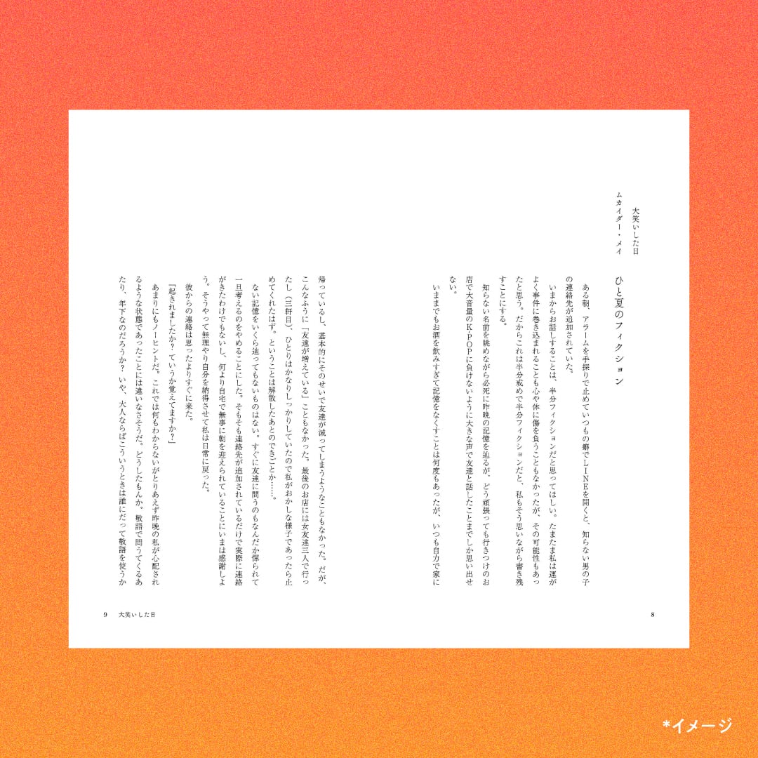 〈エッセイ〉ムカイダー・メイ、佐野裕一、あさのりな、石原空子、後藤花菜、小島あかね、竹田ドッグイヤー、逸見実奈、屋良朝哉、松本慎一、杉山由香、堀江昌史〈短歌〉たろりずむ、謀楽しお、domeki